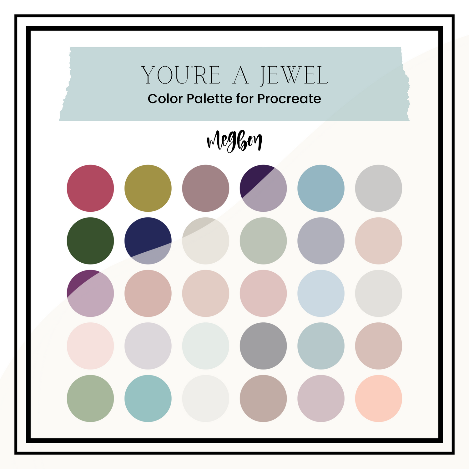 Any editing, sharing, or selling of a MEG BON LLC Procreate Color Palette digital download is copyright infringement. Please do not claim this color palette as your own, resell, alter, etc.